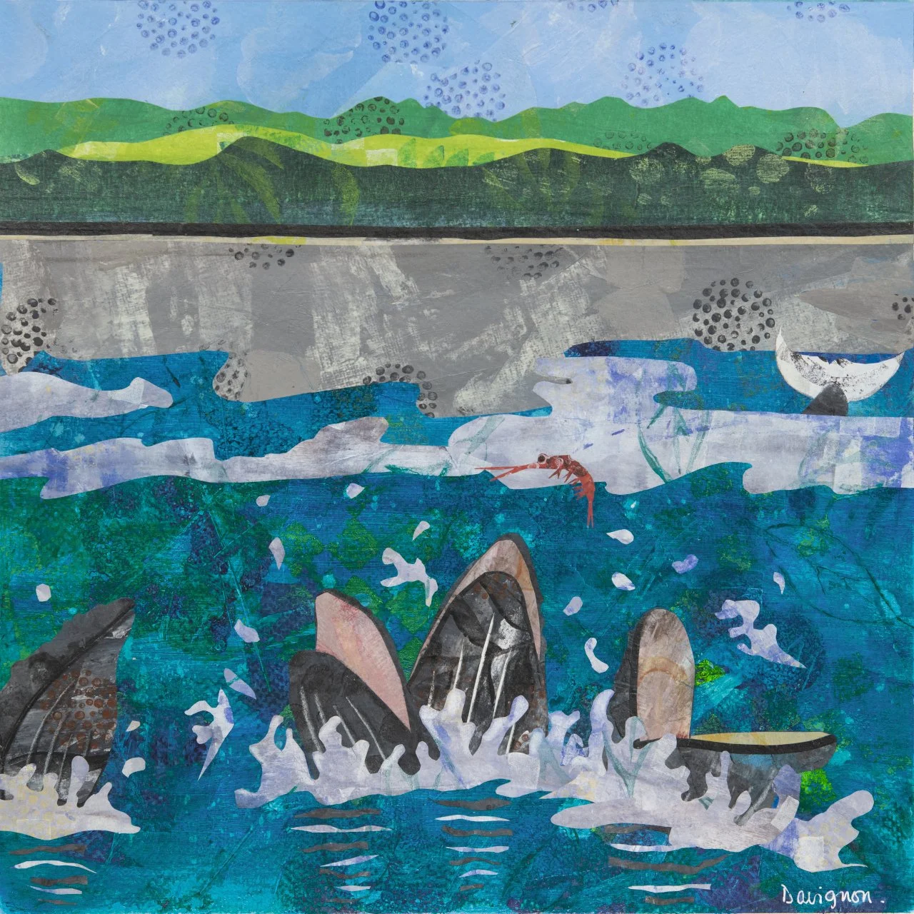 Le spectacle d’une baleine se nourrissant est à couper le souffle. Dans le déclin des quantités de krill disponibles, merci aux pêches industrielles, j’imagine la scène d’un groupe de baleines se battant pour le seul krill restant.